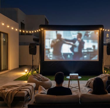 Outdoor movie nights in Dubai hit different. The weather is good, the vibe is chilled, and it feels like a private cinema at your villa. That’s why Echo Dubai Outdoor Cinema Rental is now one of our most requested setups for villa gatherings, birthdays, couples nights, family events, and small corporate get-togethers.